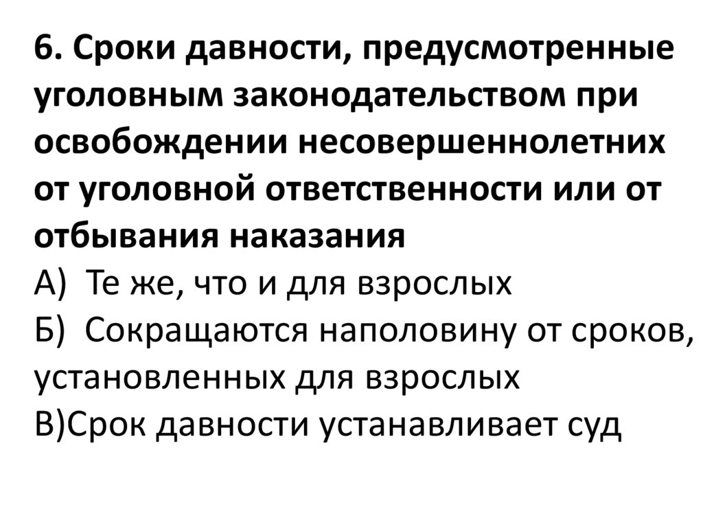 6. Сроки давности, предусмотренныеуголовным законодательством при