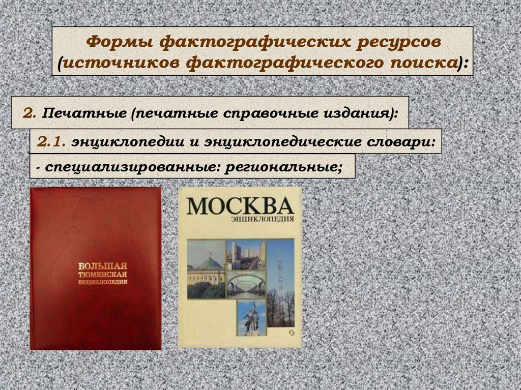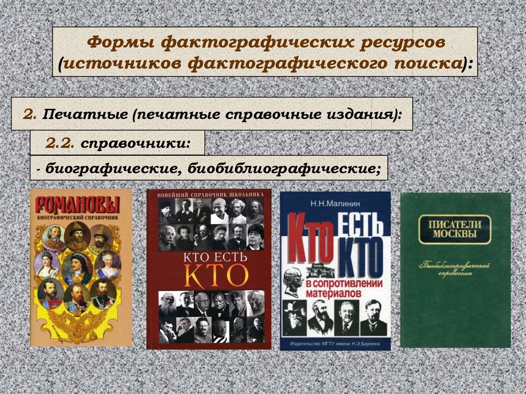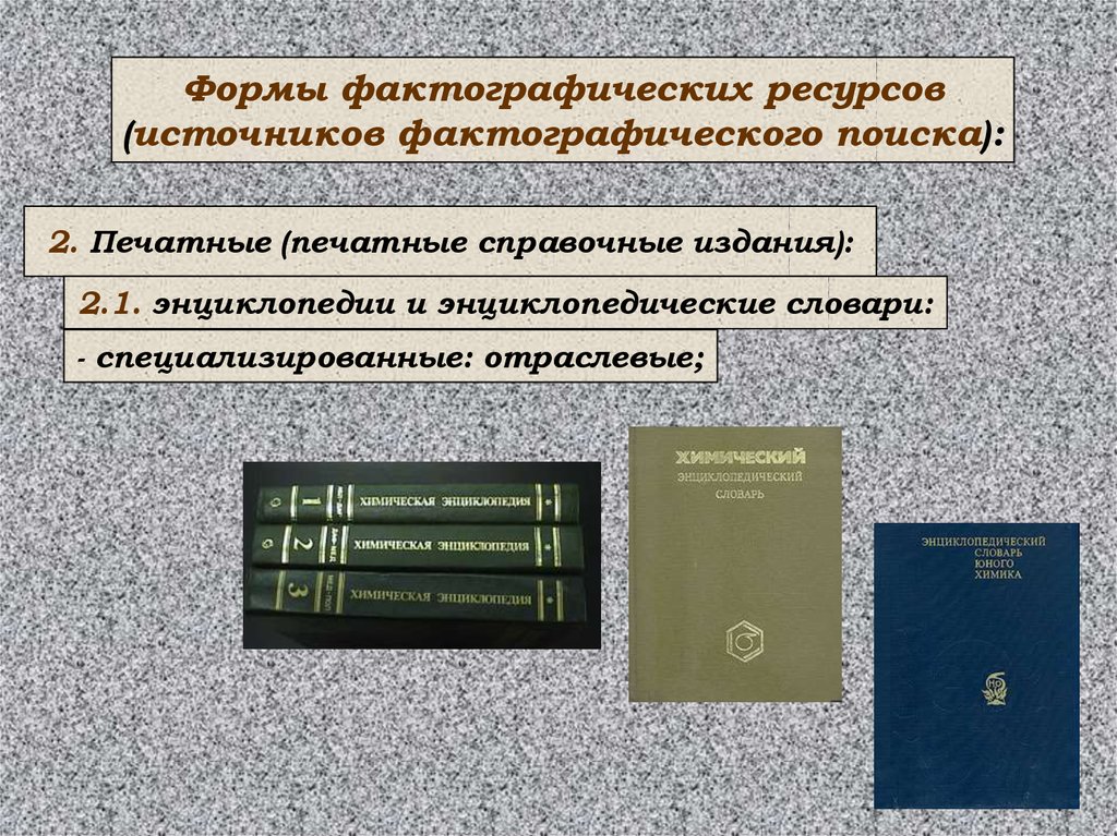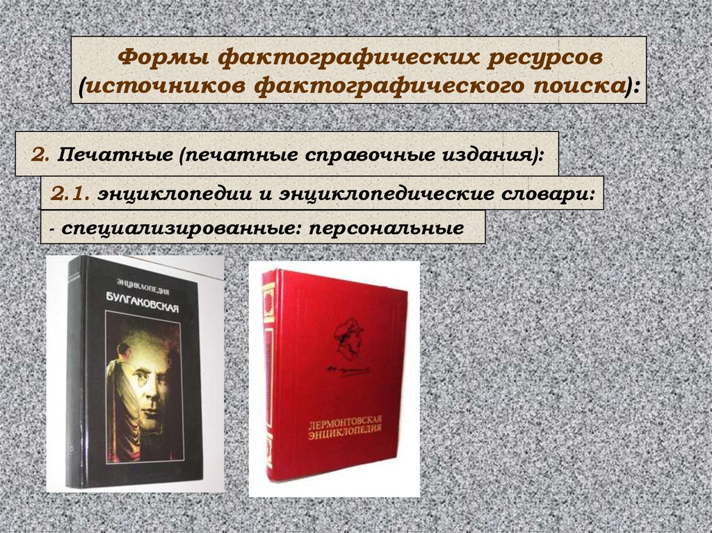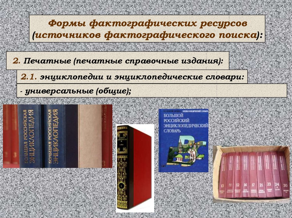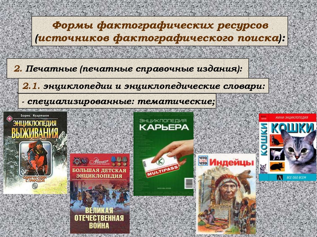 Формы фактографических ресурсов(источников фактографического поиска):