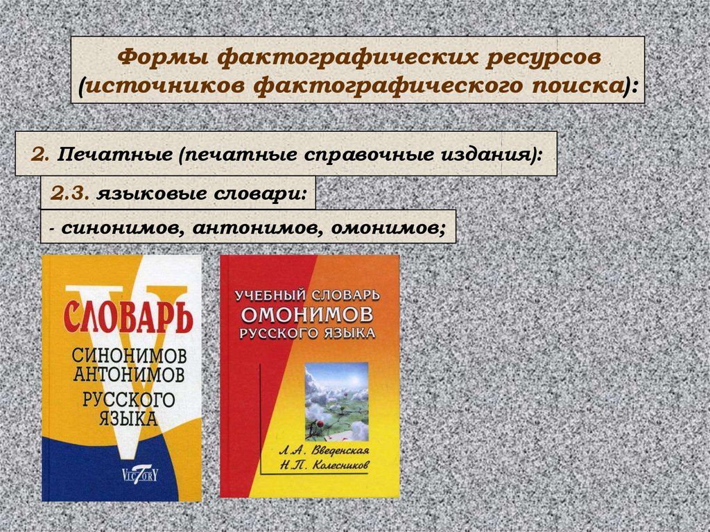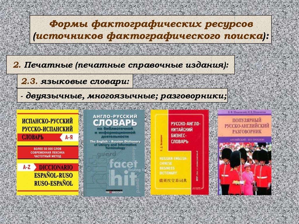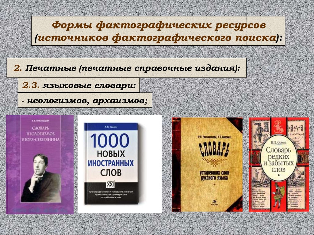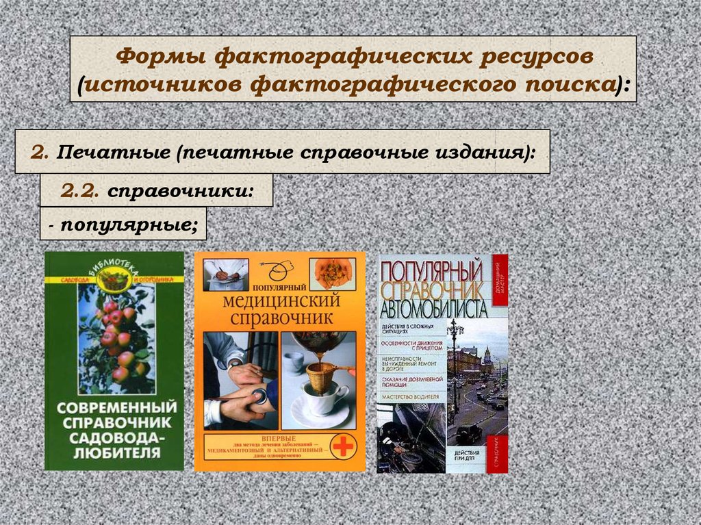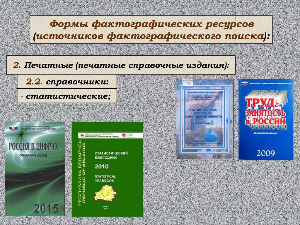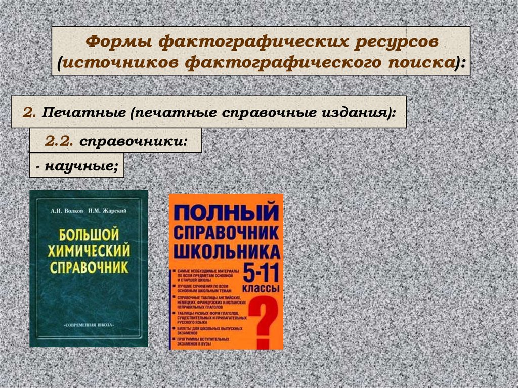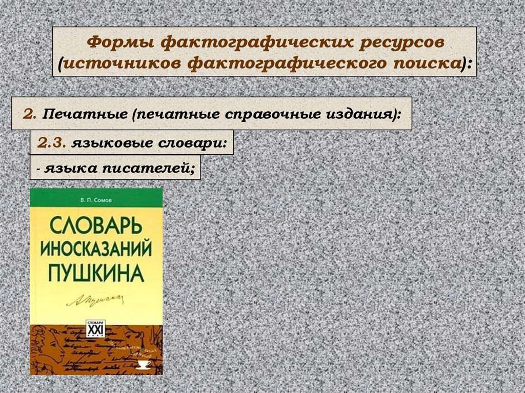 Формы фактографических ресурсов(источников фактографического поиска):