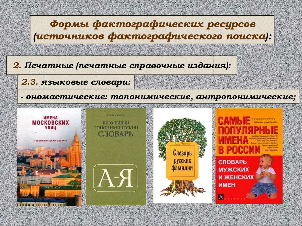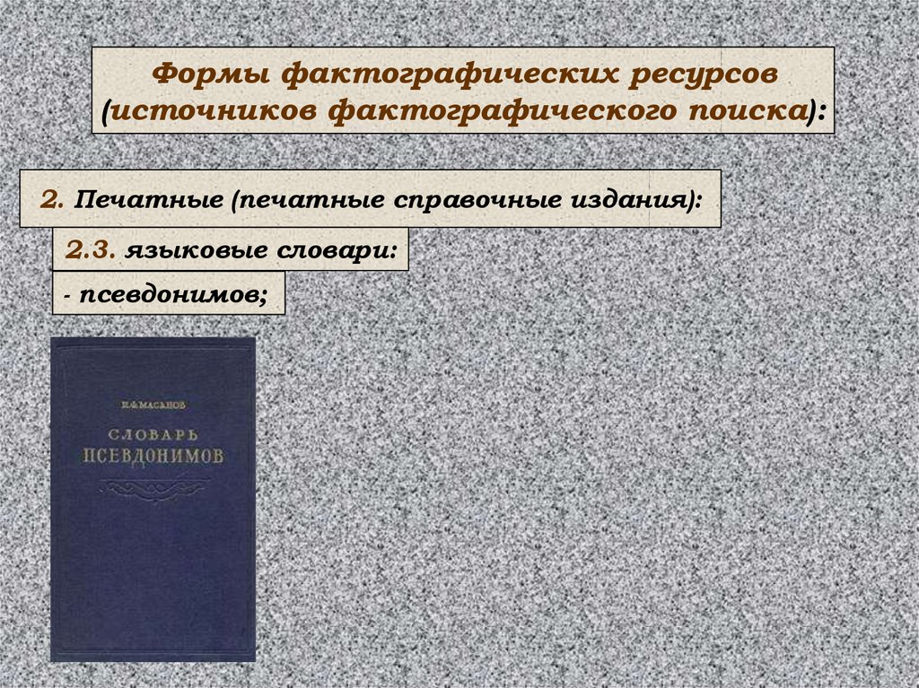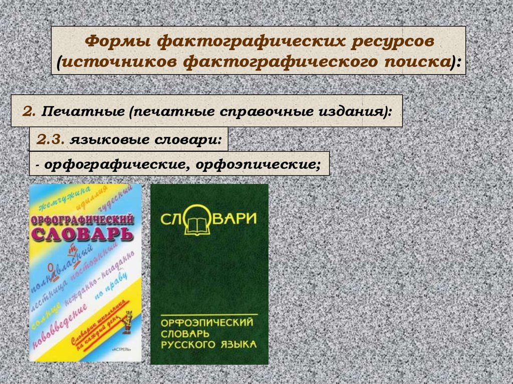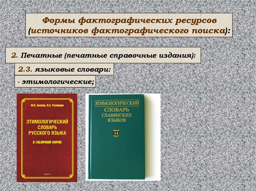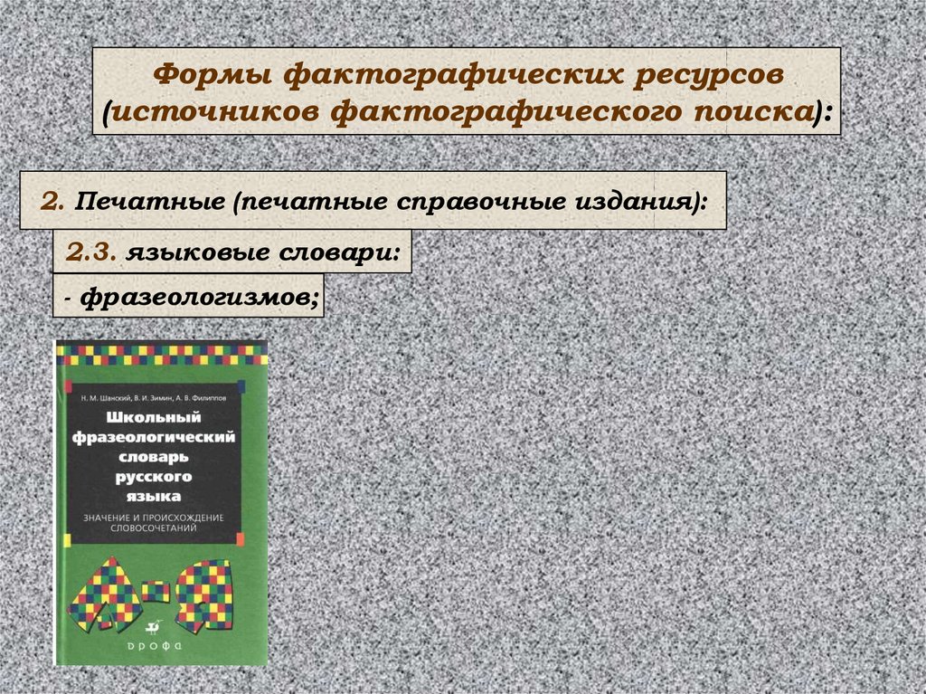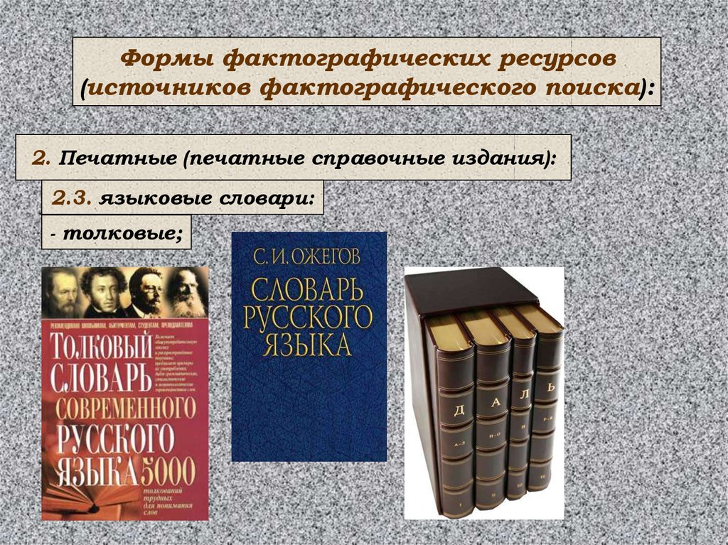 Формы фактографических ресурсов(источников фактографического поиска):