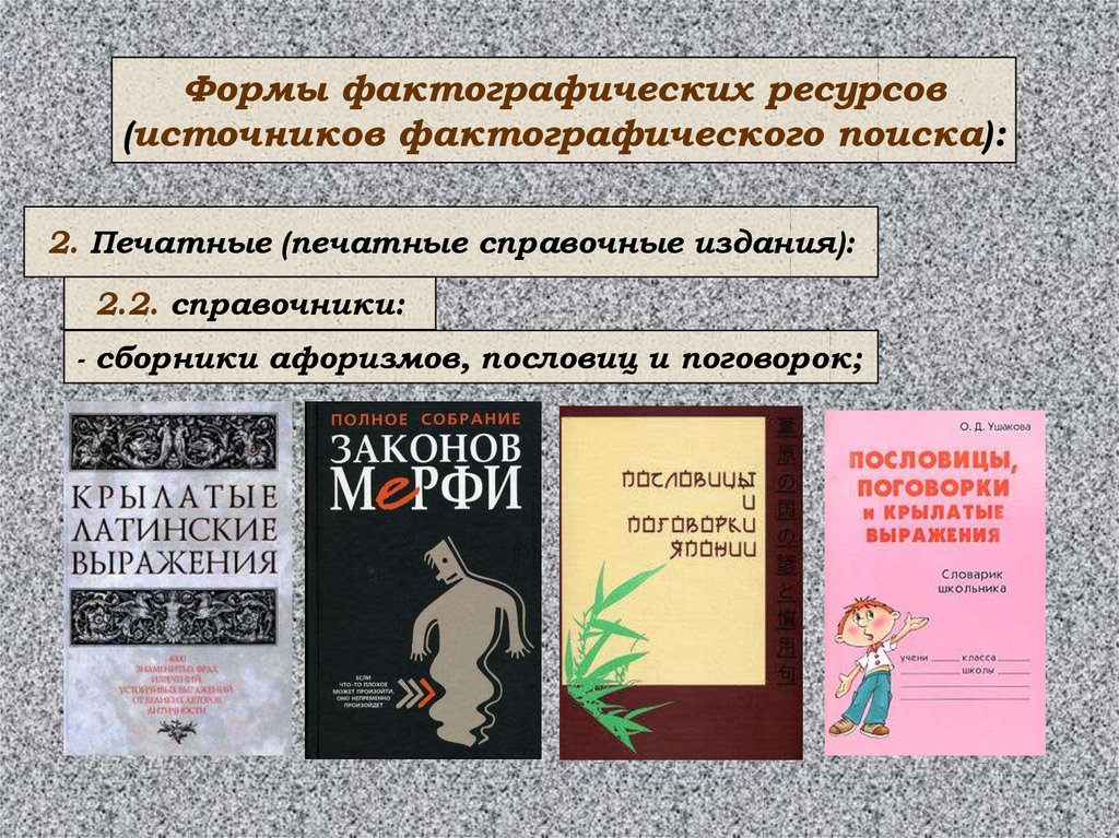 - сборники афоризмов, пословиц и поговорок;