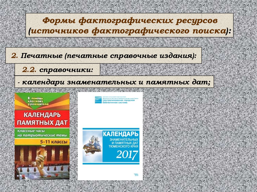 - календари знаменательных и памятных дат;