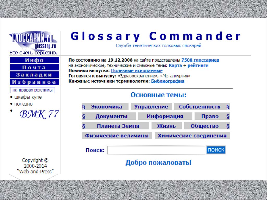 - специализированные: тематические;