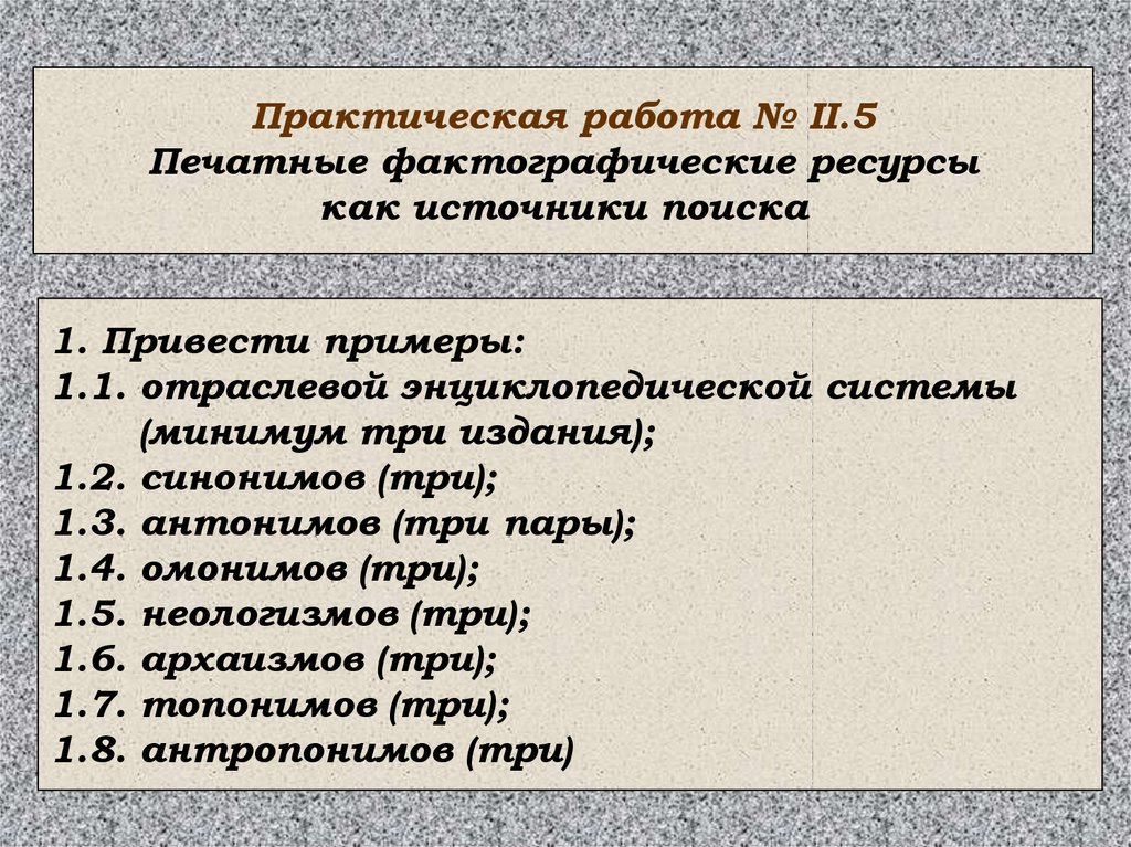 Практическая работа № II.5Печатные фактографические ресурсы