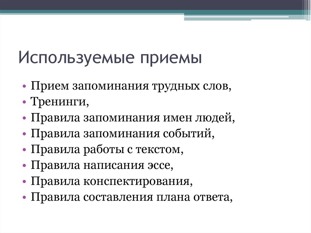 Используемые приемыПрием запоминания трудных слов,
