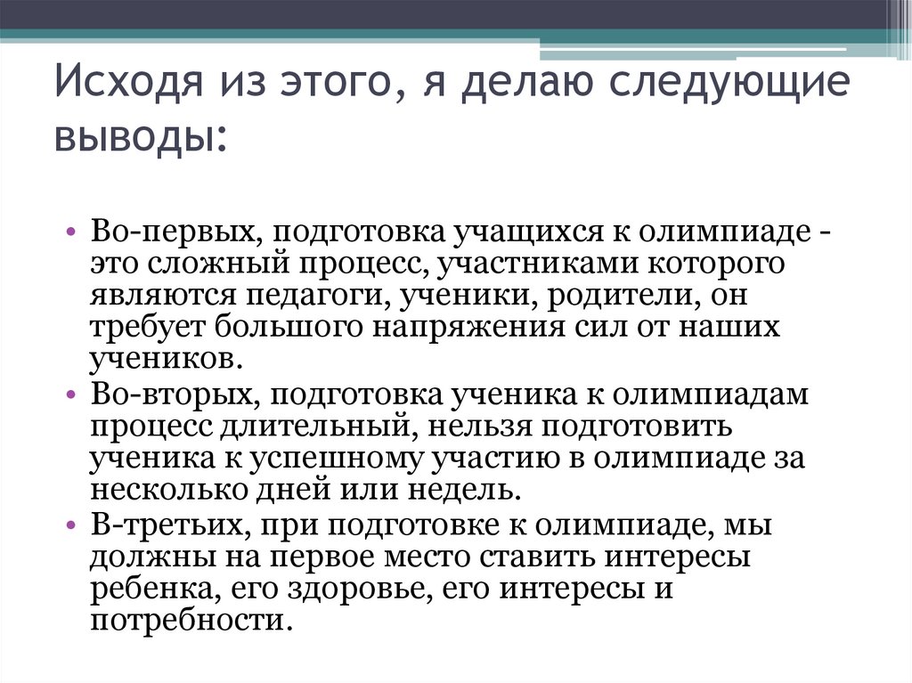 • Во-первых, подготовка учащихся к олимпиаде это сложный процесс, участниками которого