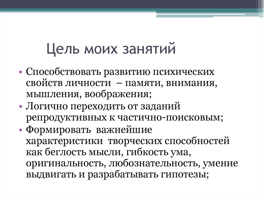 Цель моих занятий• Способствовать развитию психических