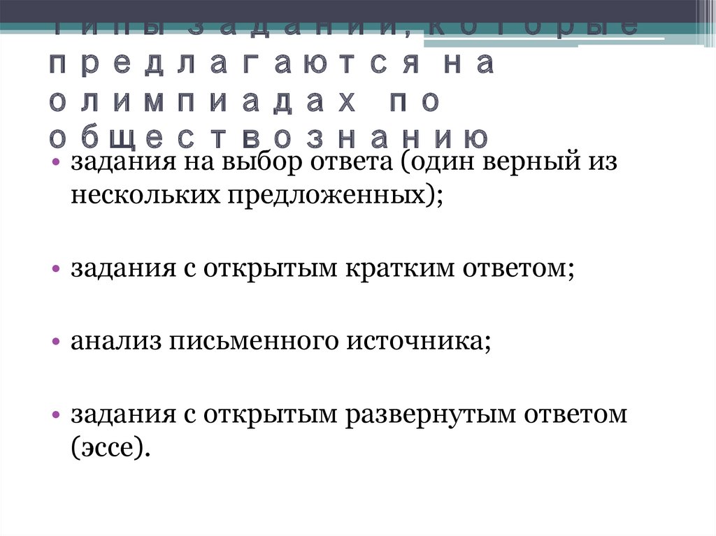Типы заданий, которыепредлагаются на