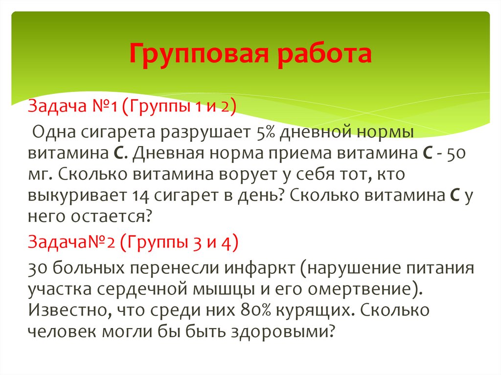 Групповая работаЗадача №1 (Группы 1 и 2)