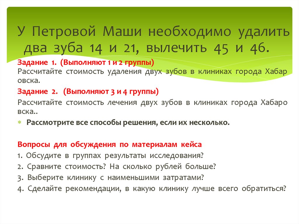 Рассчитайте стоимость лечения двух зубов в клиниках города Хабаро