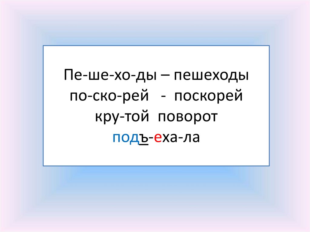 Пе-ше-хо-ды – пешеходыпо-ско-рей - поскорей