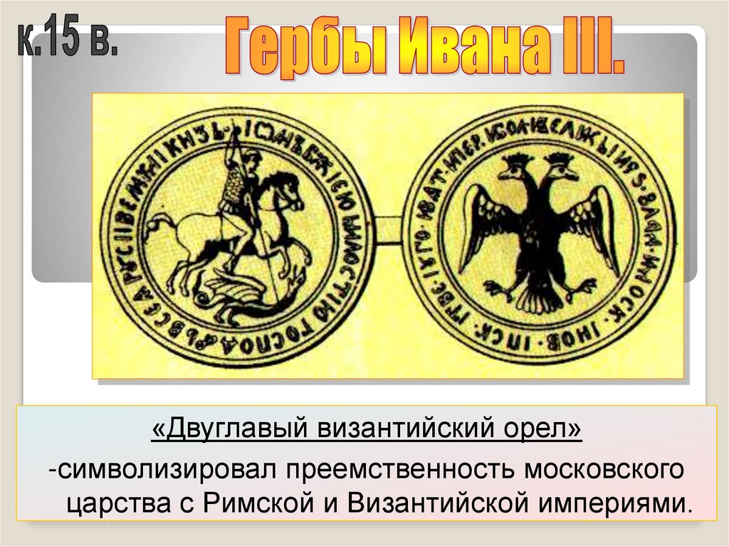 «Двуглавый византийский орел»-символизировал преемственность московского