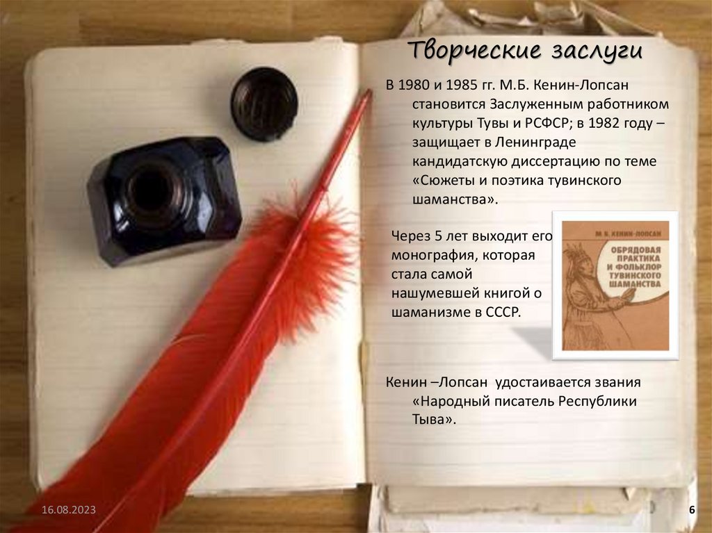 Творческие заслугиВ 1980 и 1985 гг. М.Б. Кенин-Лопсан