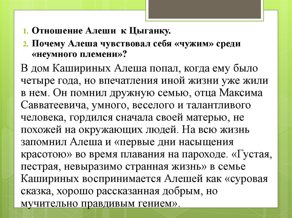 Отношение Алеши к Цыганку.