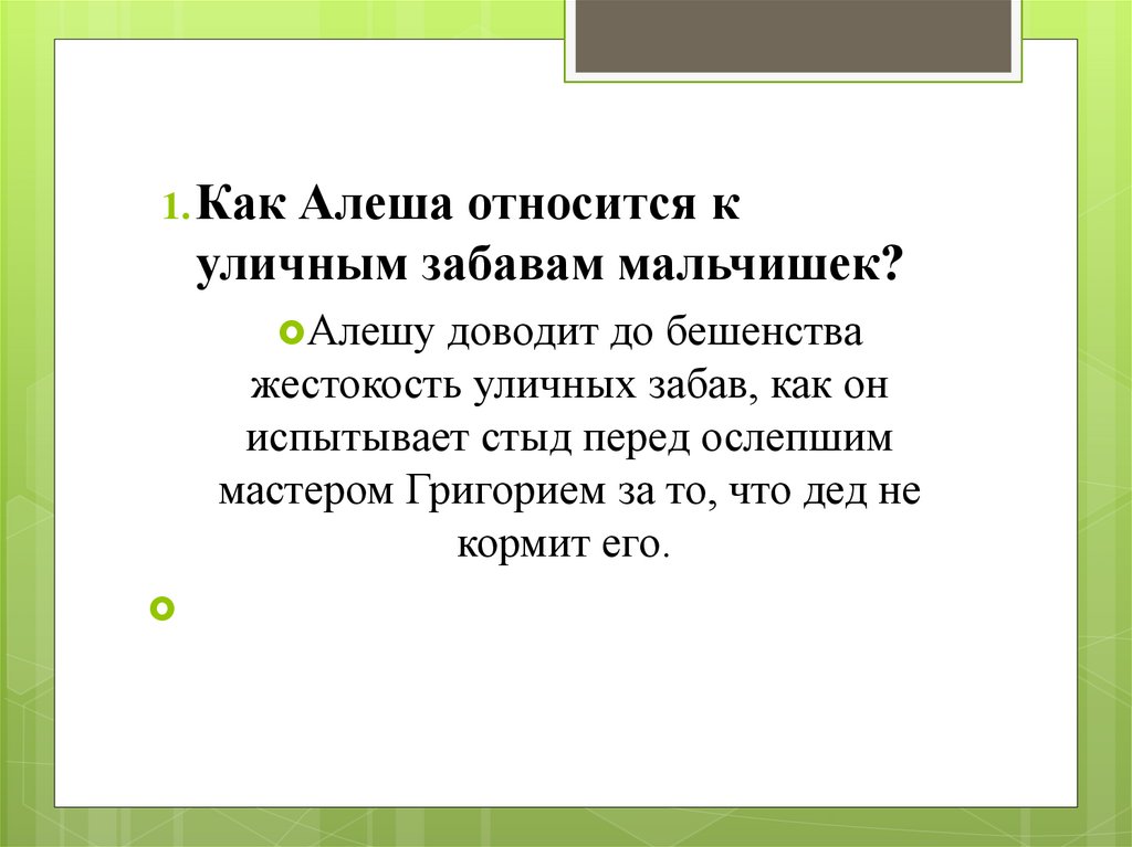 Алеше в доме деда и как это