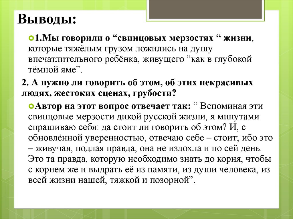 говорили о “свинцовых мерзостях “ жизни,