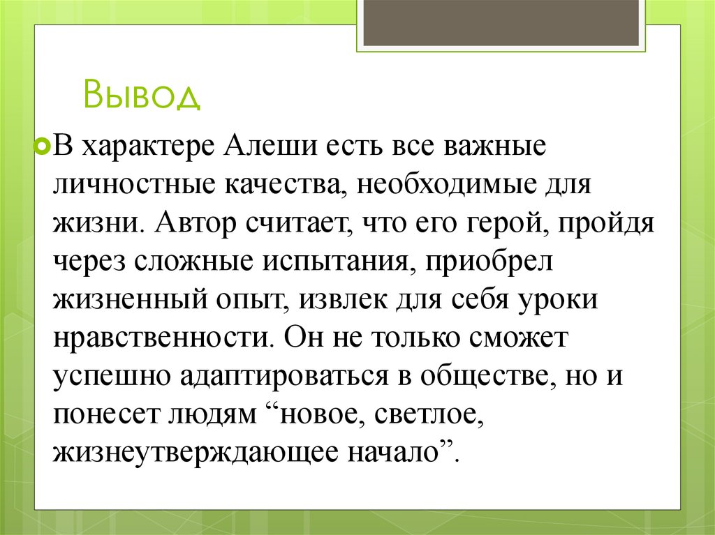характере Алеши есть все важные
