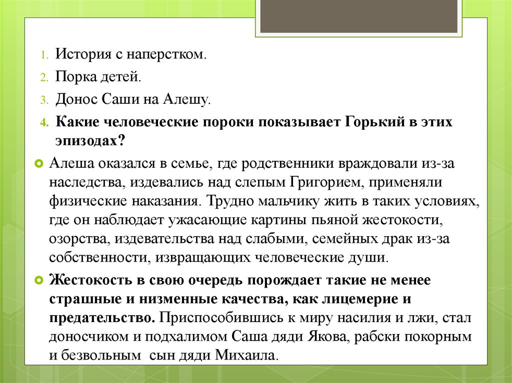 4. Какие человеческие пороки показывает Горький в этих