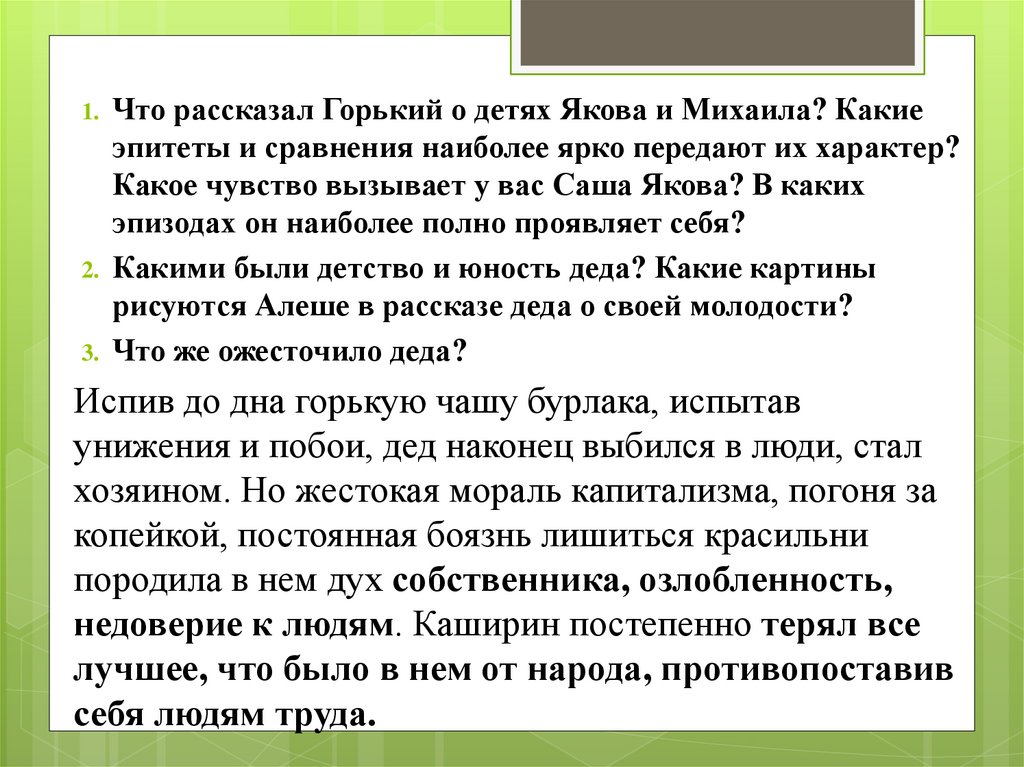 Что рассказал Горький о детях Якова и Михаила? Какие