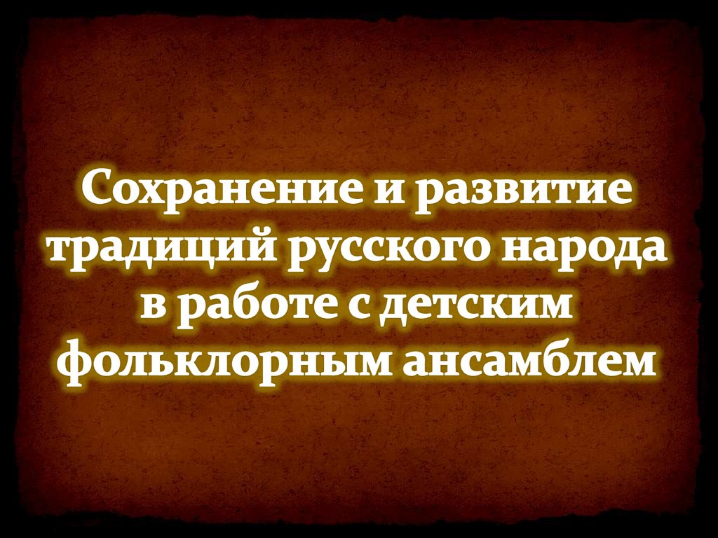 Сохранение и развитие традиций русского народа в работе с детским фольклорным ансамблем