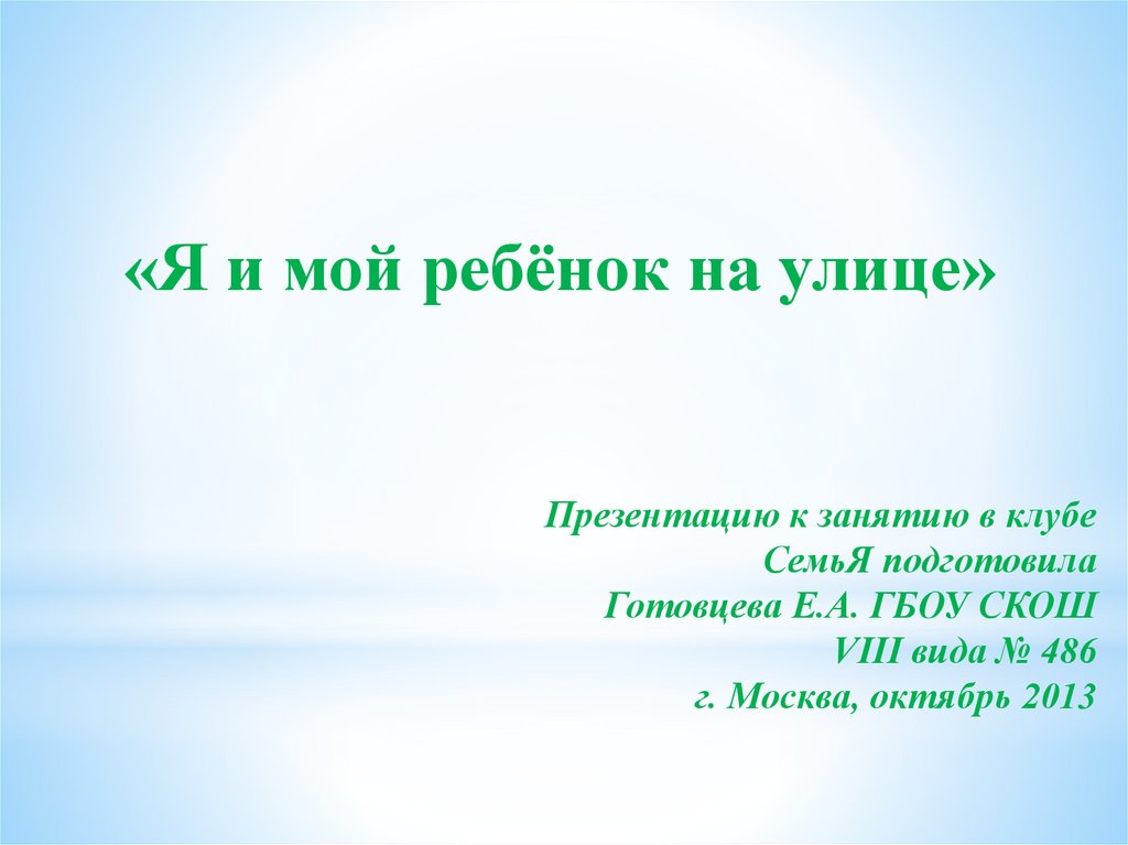 «Я и мой ребёнок на улице»Презентацию к занятию в клубе