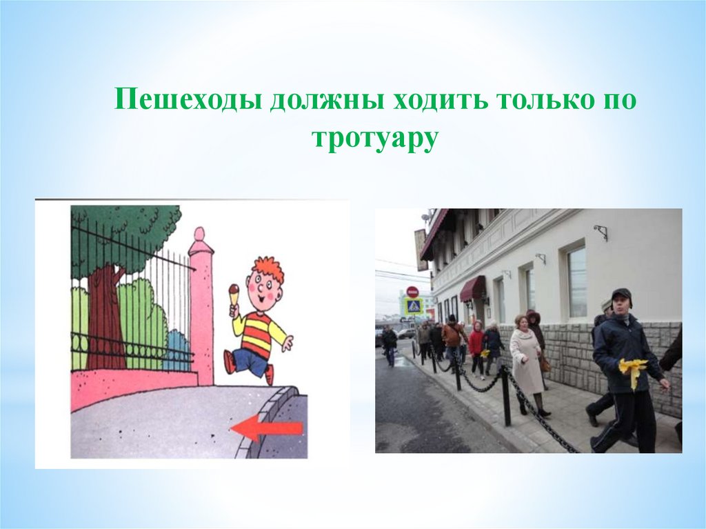 Пешеходы должны ходить только потротуару
