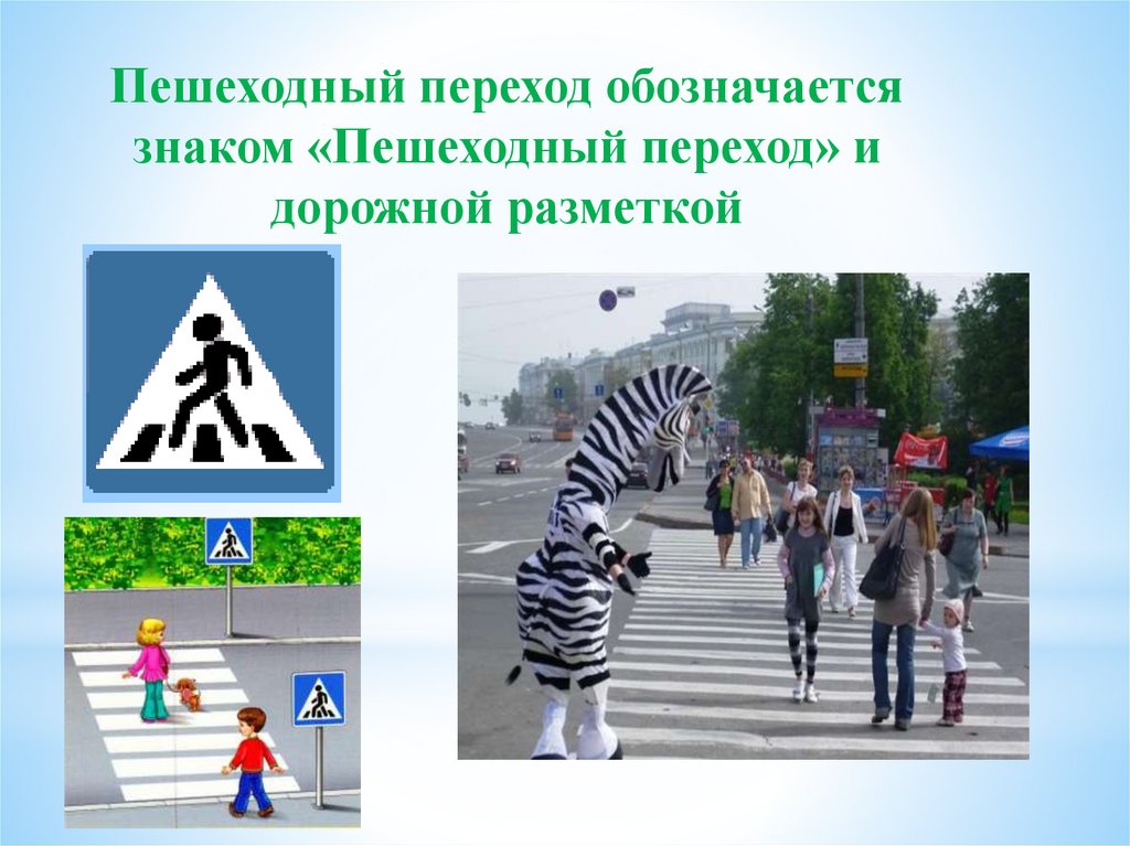 Пешеходный переход обозначаетсязнаком «Пешеходный переход» и