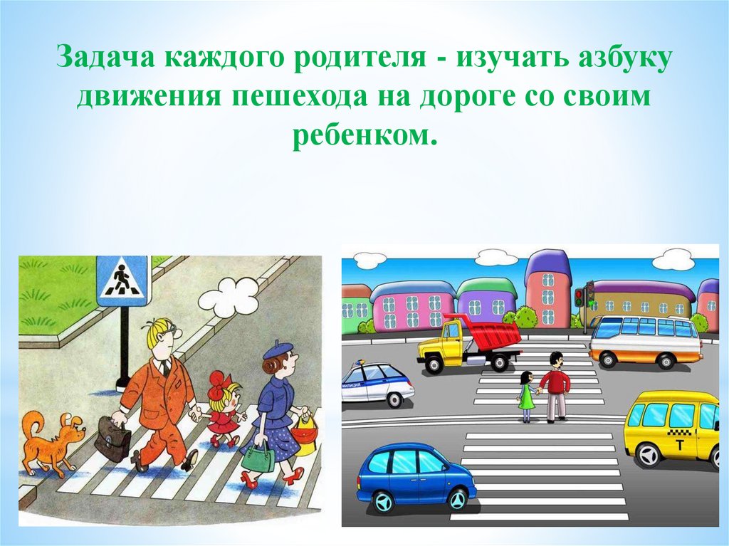 Задача каждого родителя - изучать азбукудвижения пешехода на дороге со своим