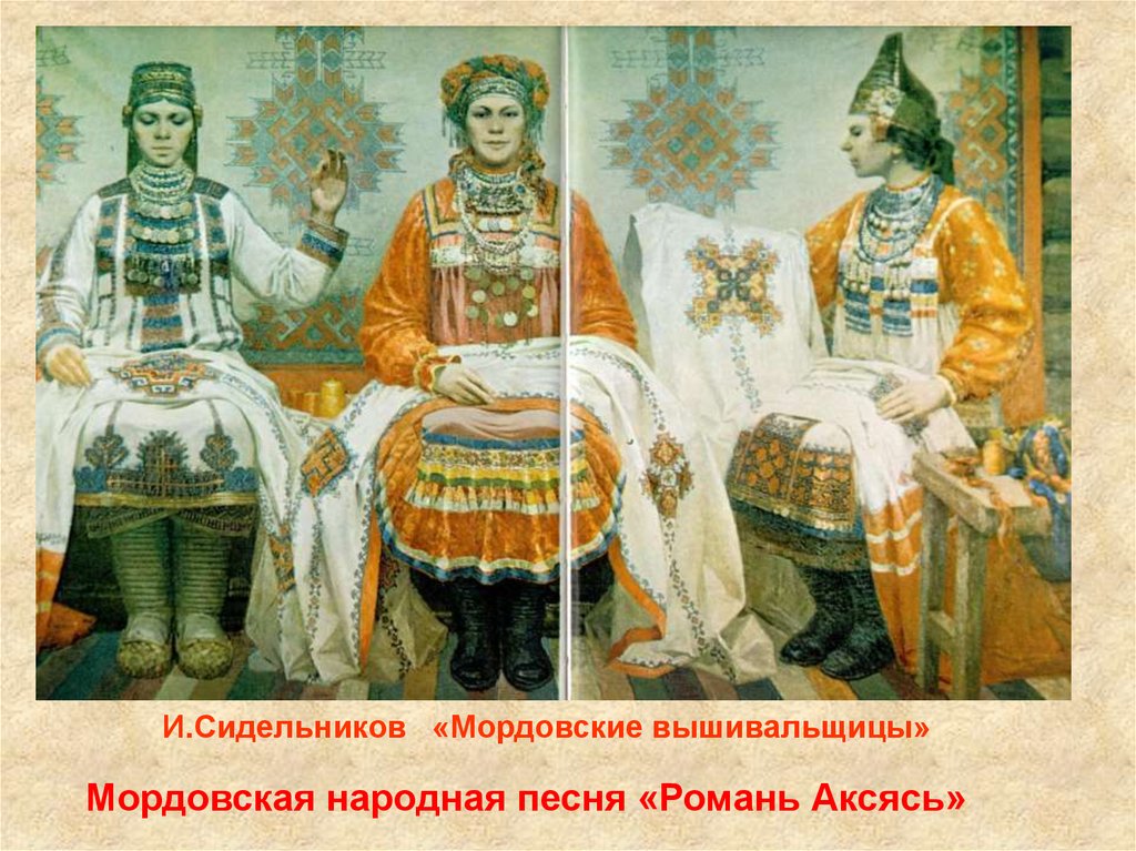 И.Сидельников «Мордовские вышивальщицы»Мордовская народная песня «Романь Аксясь»