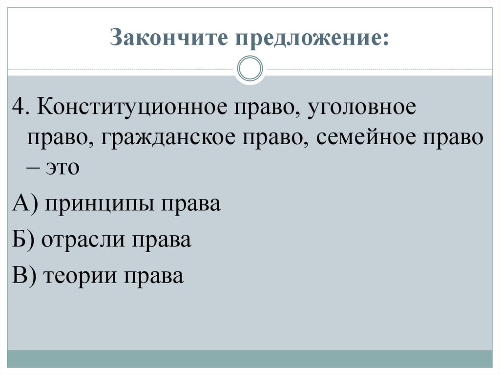 Закончите предложение:4. Конституционное право, уголовное