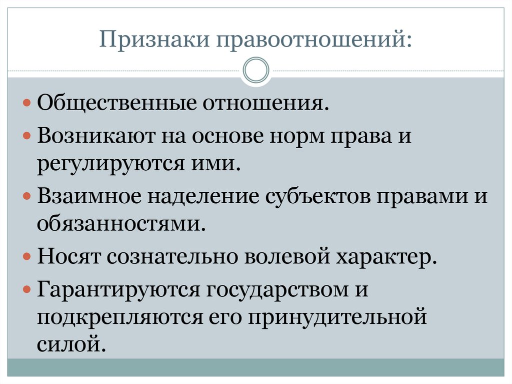 Признаки правоотношений:Общественные отношения.
