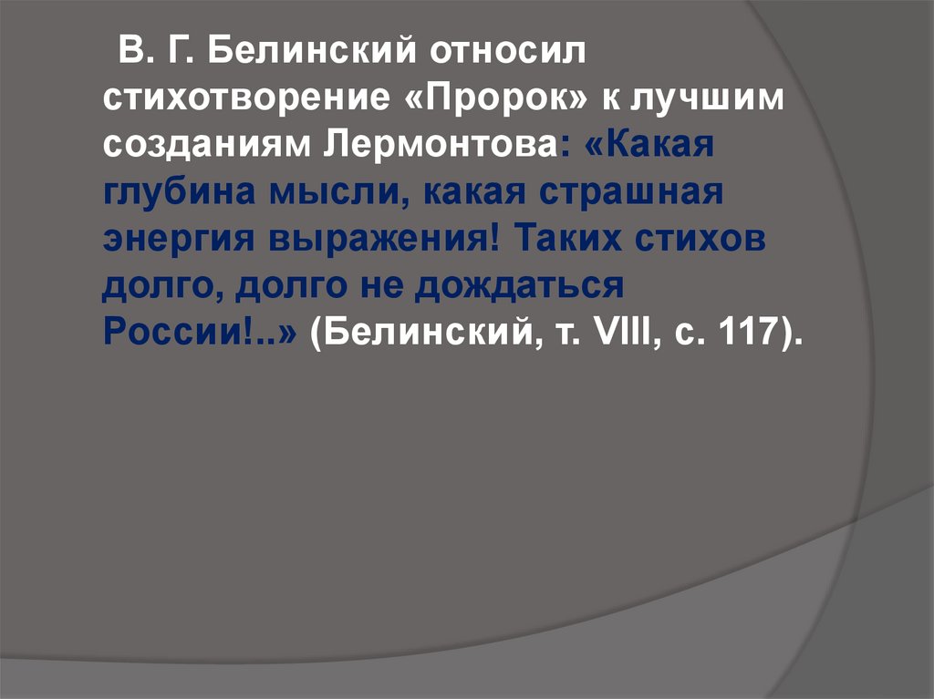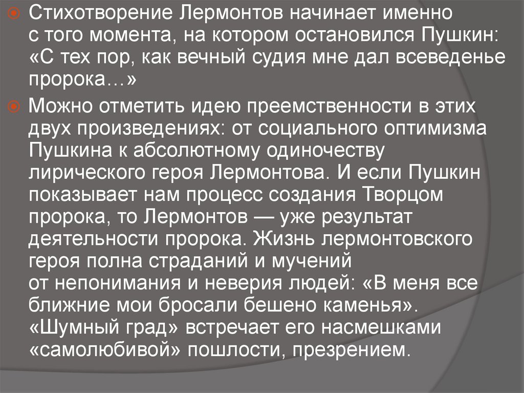 пророка, то Лермонтов — уже результат