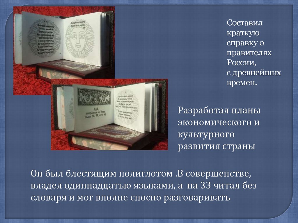 владел одиннадцатью языками, а на 33 читал без