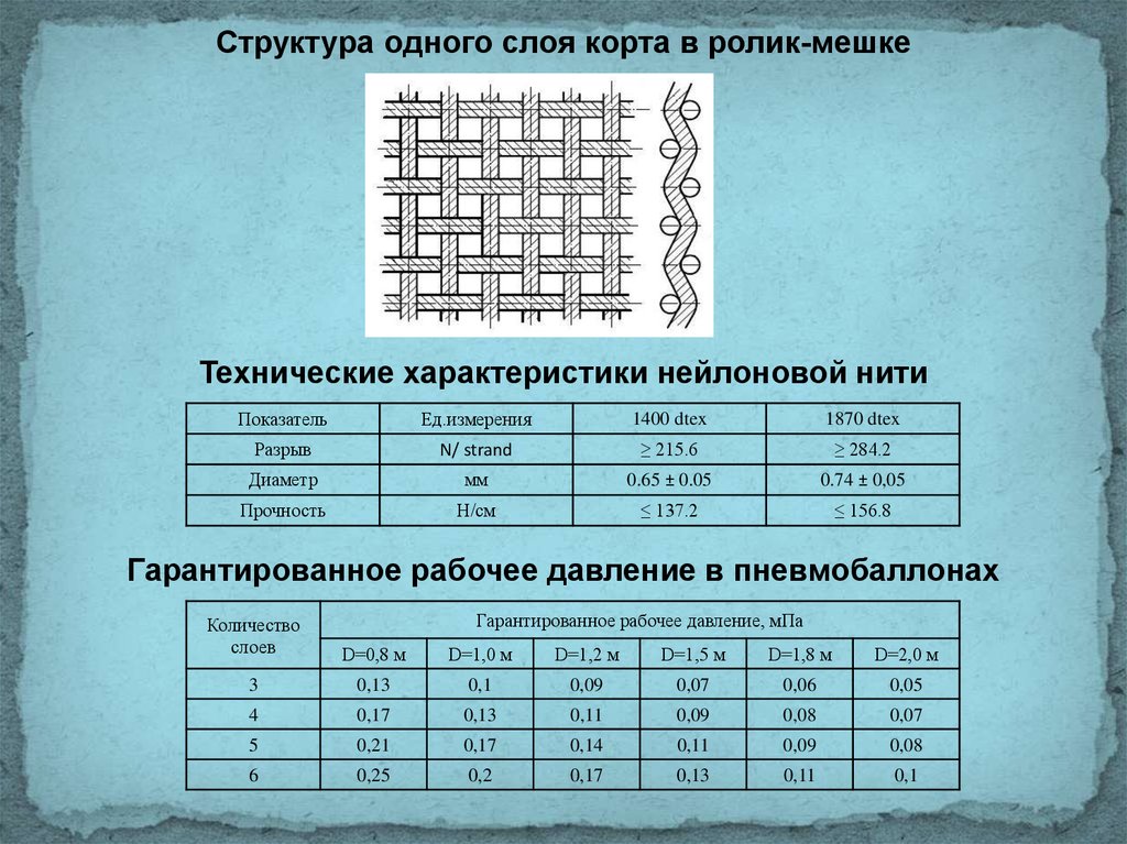 Структура одного слоя корта в ролик-мешкеТехнические характеристики нейлоновой нити
