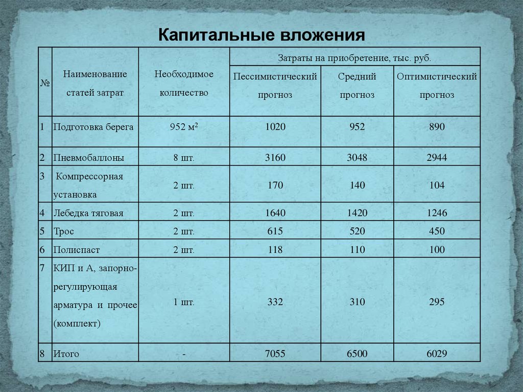Экономическая оценка инвестиций в организацию пневматического судоподъемного комплекса