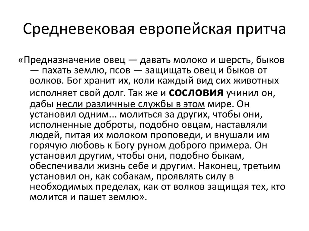 Средневековая европейская притча«Предназначение овец — давать молоко и шерсть, быков