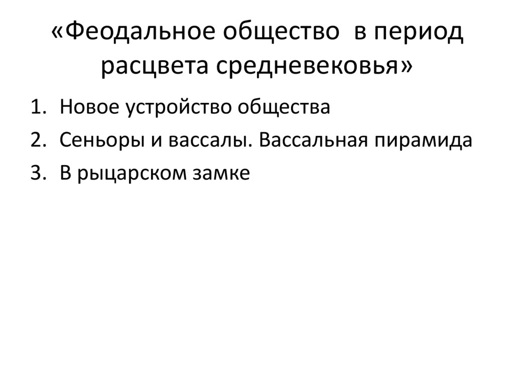 «Феодальное общество в периодрасцвета средневековья»