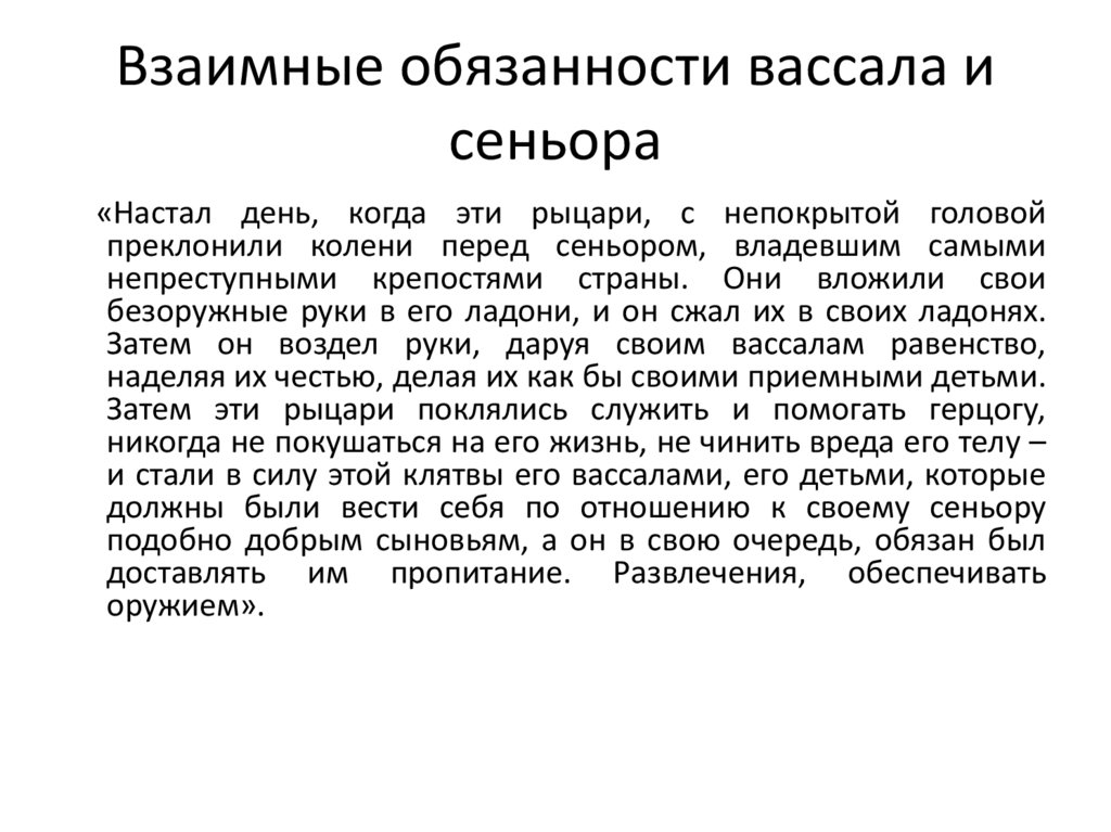 должны были вести себя по отношению к своему сеньору