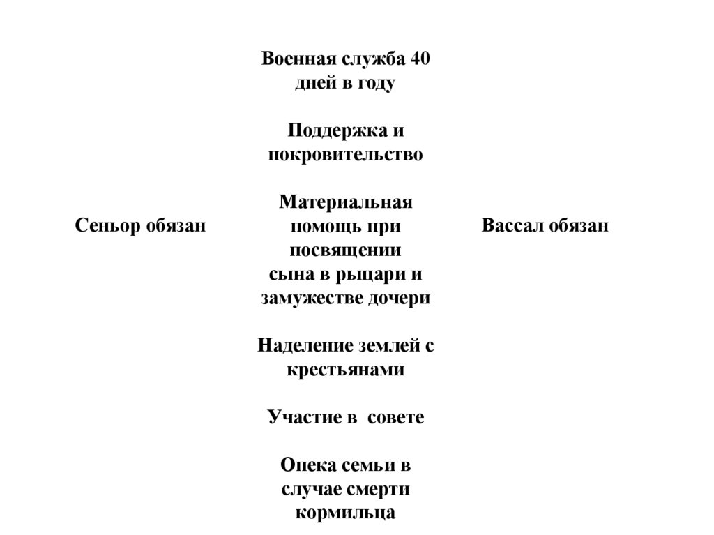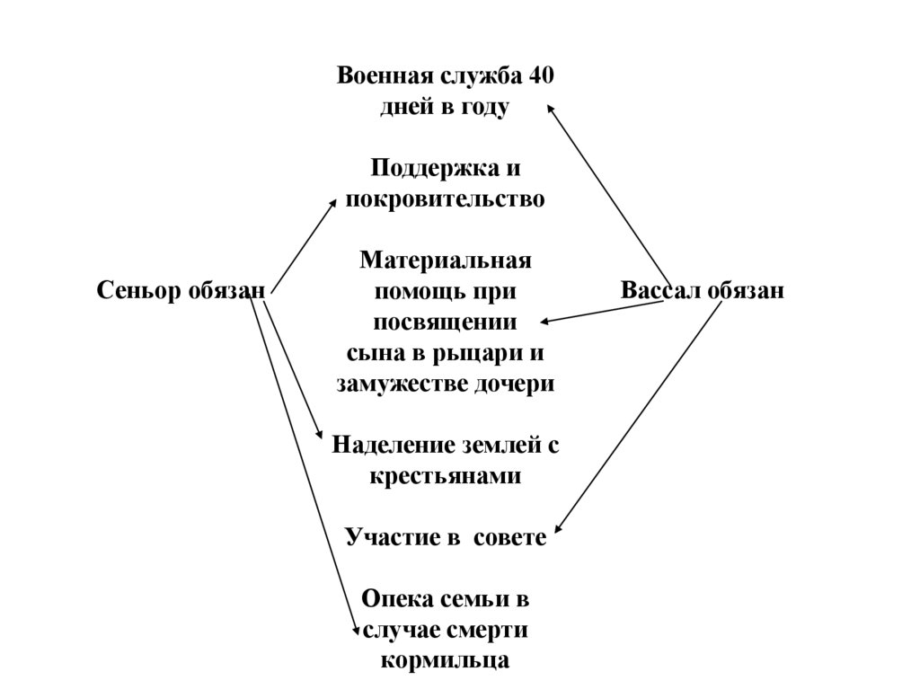 условий. Вассал может дать сеньору землю, а сеньор –
