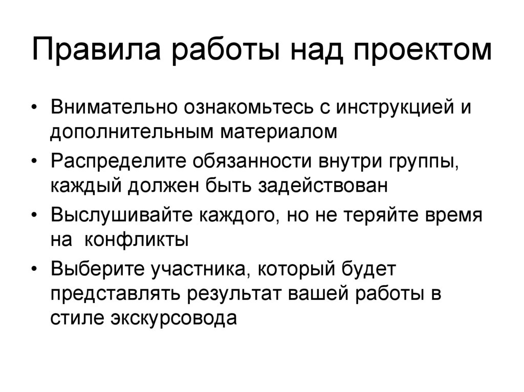 Правила работы над проектом• Внимательно ознакомьтесь с инструкцией и