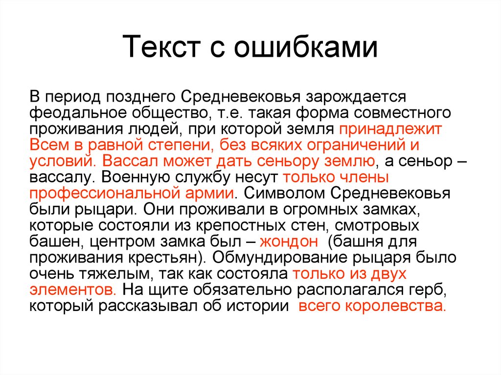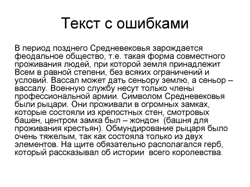 Текст с ошибкамиВ период позднего Средневековья зарождается
