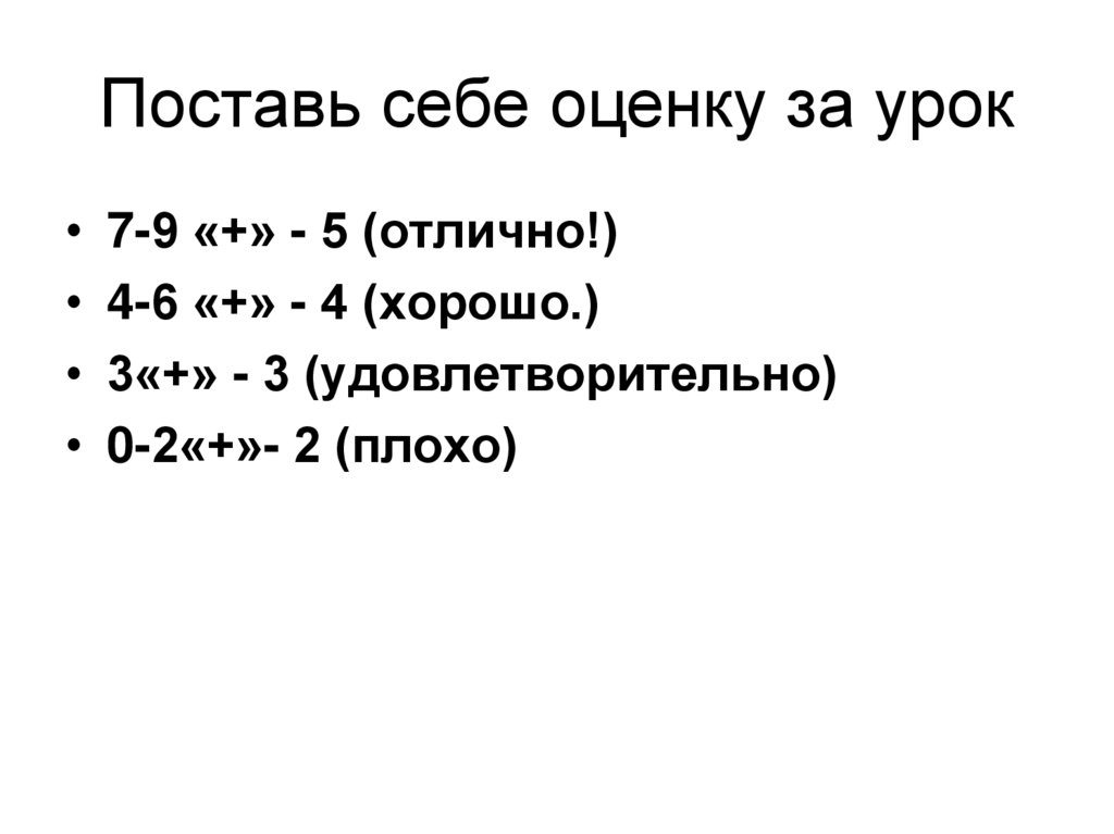 Поставь себе оценку за урок7-9 «+» - 5 (отлично!)
