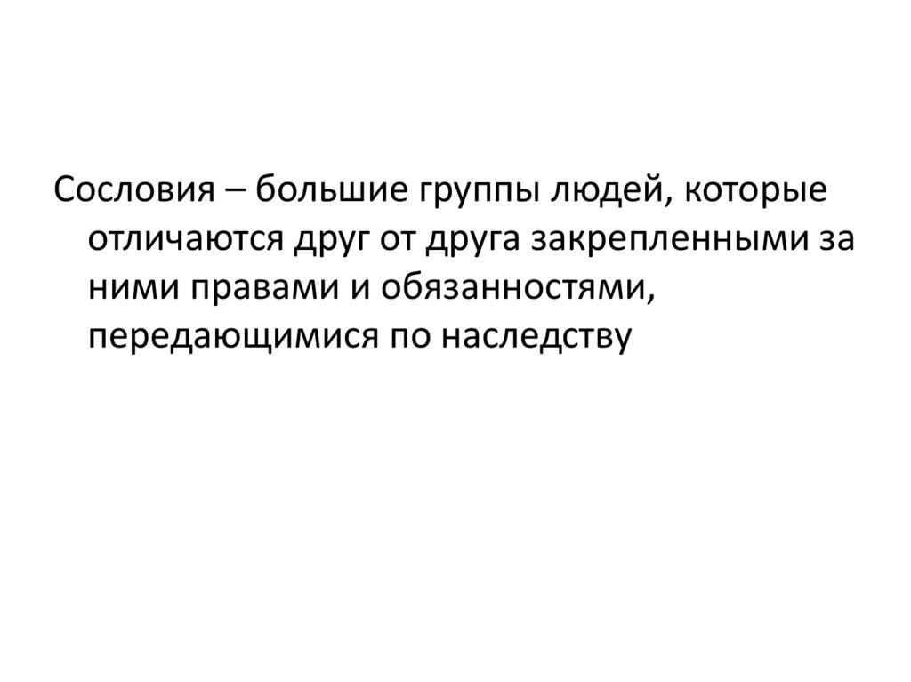 Сословия – большие группы людей, которыеотличаются друг от друга закрепленными за