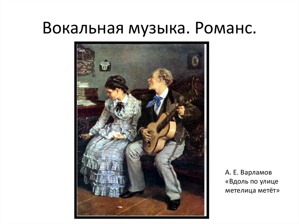Вокальная музыка. Романс. А.Е. Варламов «Вдоль по улице метелица метёт»