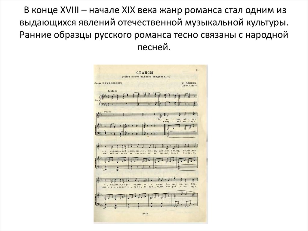 В конце XVIII – начале XIX века жанр романса стал одним извыдающихся явлений отечественной музыкальной культуры.