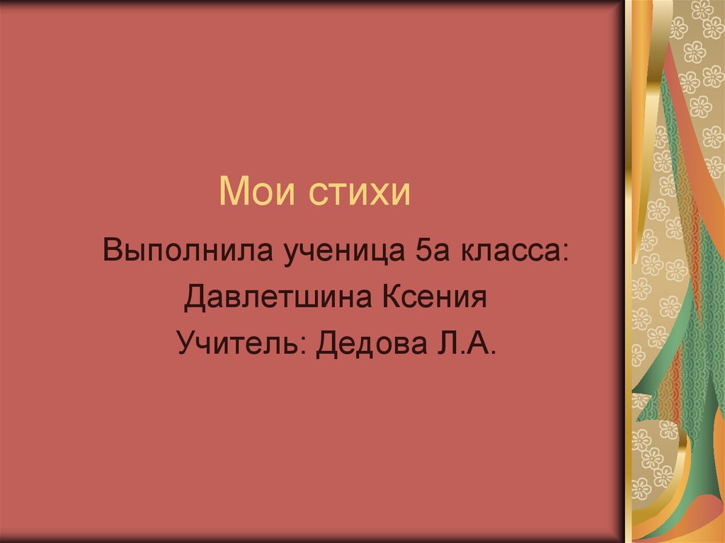 Выполнила ученица 5а класса:Давлетшина Ксения