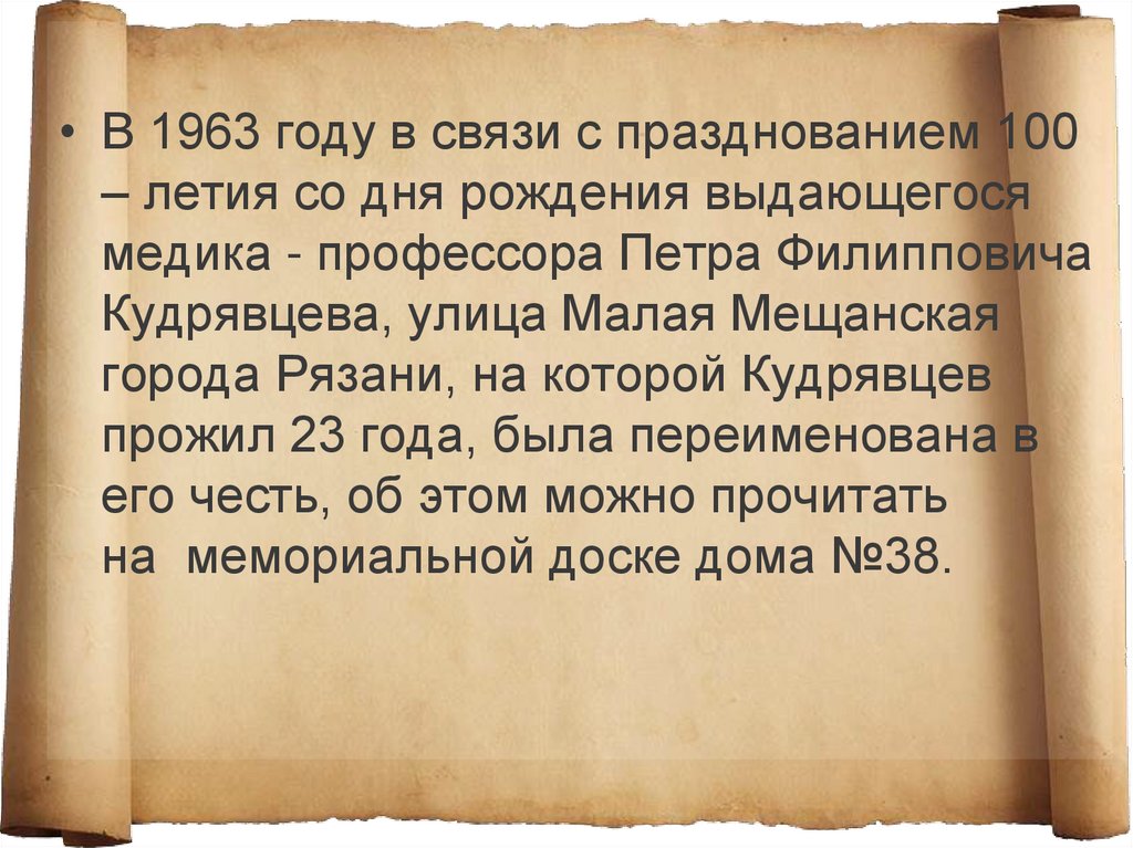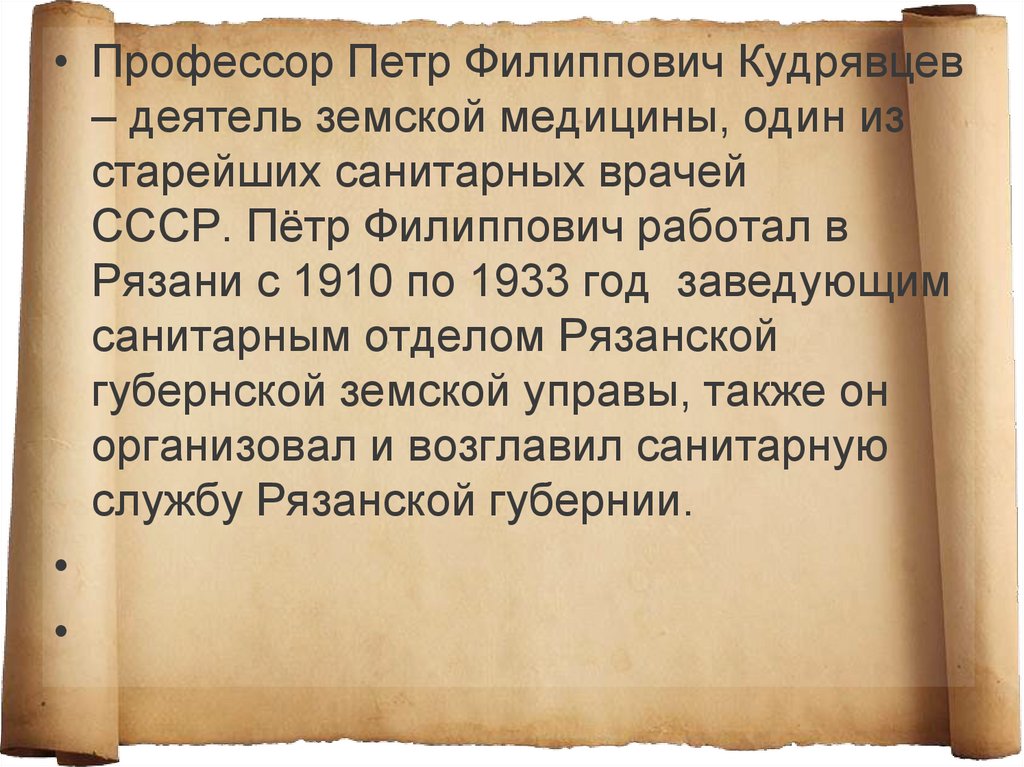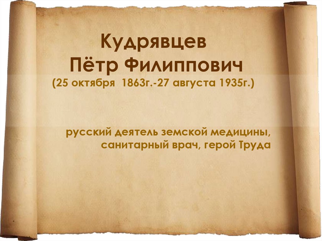 • Профессор Петр Филиппович Кудрявцев– деятель земской медицины, один из