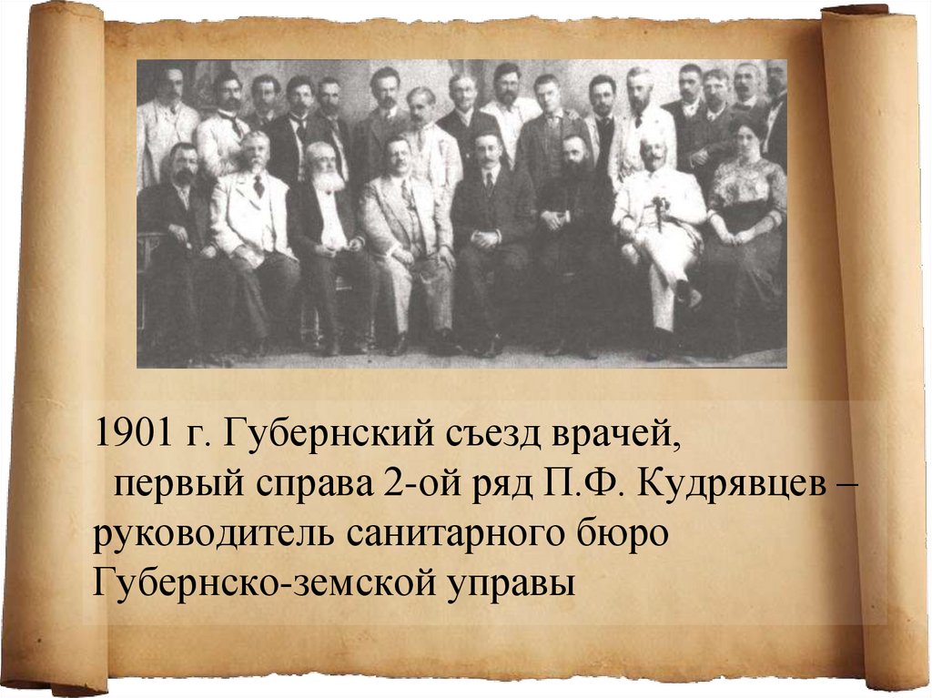 1901 г. Губернский съезд врачей,первый справа 2-ой ряд П.Ф. Кудрявцев –