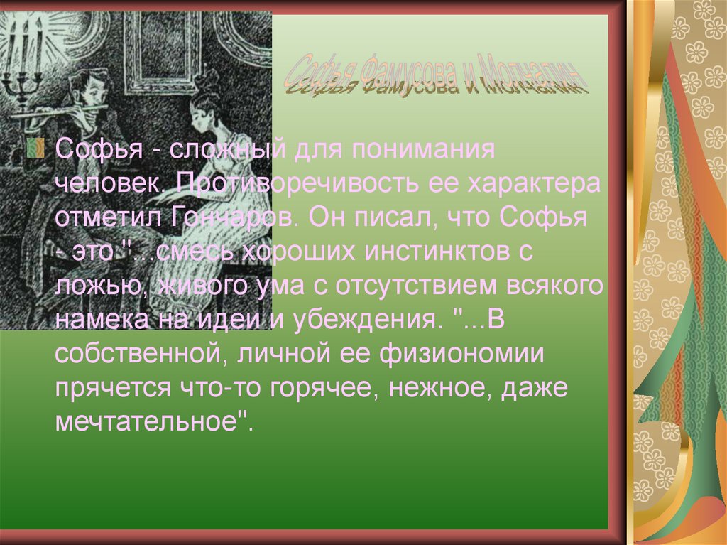 отметил Гончаров. Он писал, что Софья