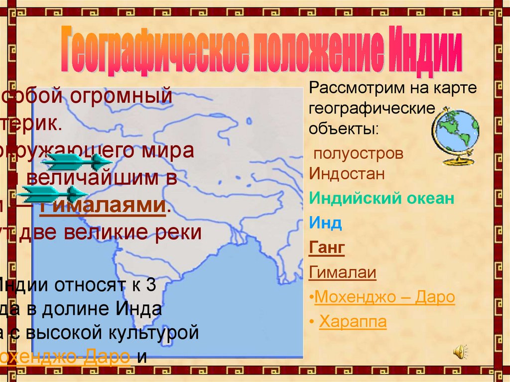 Природные условия ИндостанаРассмотрите карту